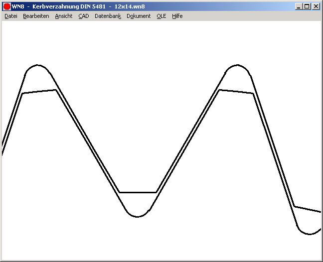 WN8 generiert eine maßstäbliche Zahnformzeichnung von Welle und Nabe, die man per DXF- oder IGES-Datei in CAD übernehmen kann.