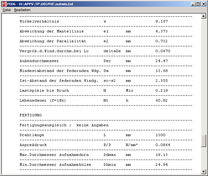 Der Ausdruck wurde ergänzt um Kennwerte, die zwar bisher schon berechnet, aber nicht ausgedruckt worden waren. Bei den Gütegraden war ein Druckfehler zu korrigieren: Statt DIN 2095 war DIN 2097 ausgegeben worden (auch in FED5 und FED7).