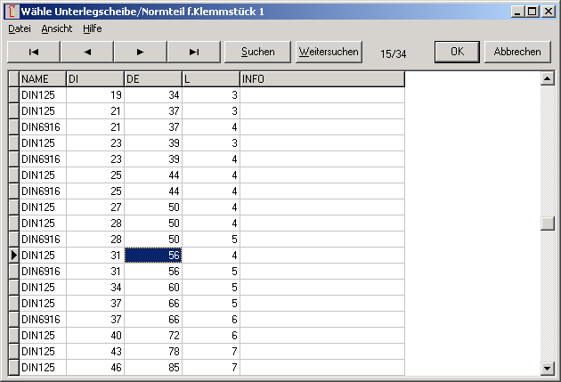In die Datenbank "klemmstk.dbf" für Standardgrößen von Klemmstücken wurden Spannscheiben nach DIN 6796 mit aufgenommen.