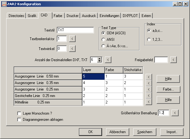 Die Größe der Maßzahlen in bemaßten Zeichnungen kann man jetzt mit einem Faktor vergrößern (>1) oder verkleinern (<1).