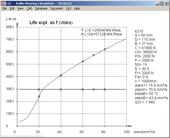 You can have a life expectancy curve generated for the bearing dependent on radial or axial force, speed, temperature or lubricant viscosity.