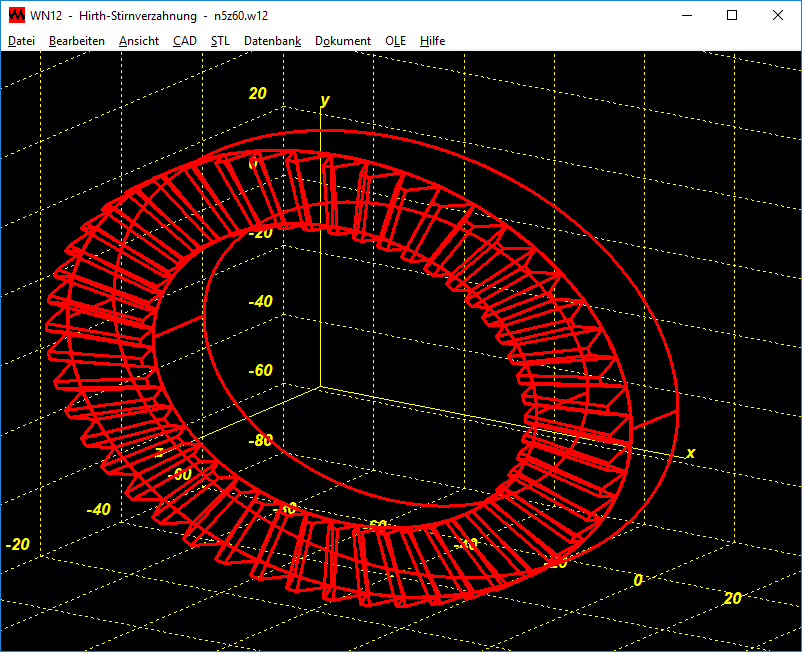 Die Zahnformzeichnung wird vom Programm generiert und kann maßstäblich in CAD übernommen werden. Ein Modell der Ringe mit Stirnverzahnung kann mit 3D-Drucker hergestellt werden, WN12 generiert dafür eine STL-Datei.