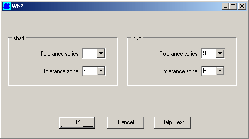 WN2 includes a data base which contains all combinations of toothed shaft joints in accordance with DIN 5480 (approx. 700 data records). The data base file can be modified and appended by the user (via WN2 or with other programs).