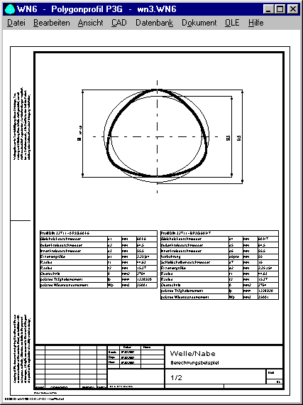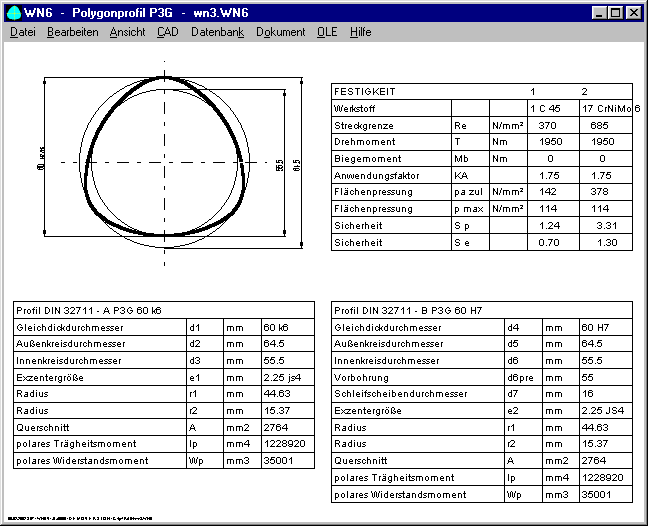 Die WN6-Software berechnet Abmessungen und Festigkeitsnachweis für Welle-Nabe-Verbindungen mit Polygonprofil P3G nach DIN 32711.