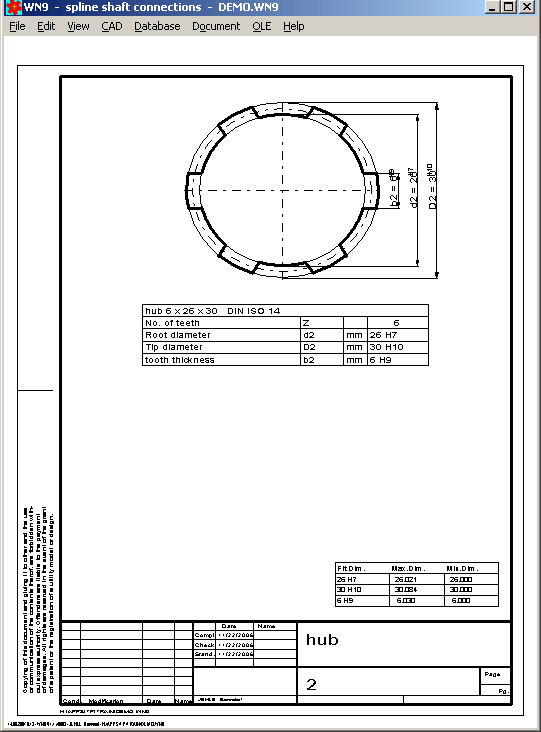 WN9 generates true-scale profile drawing of shaft profile and hub profile to be loaded into CAD. WN9 also generates tables with dimensions and tolerances.