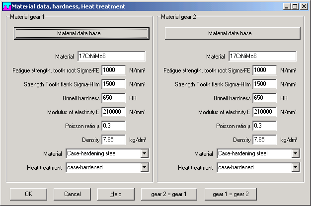 The materials used for making gears can be selected from a database and transferred to ZAR1. A database suited to this purpose is one that uses dBase format or the integrated