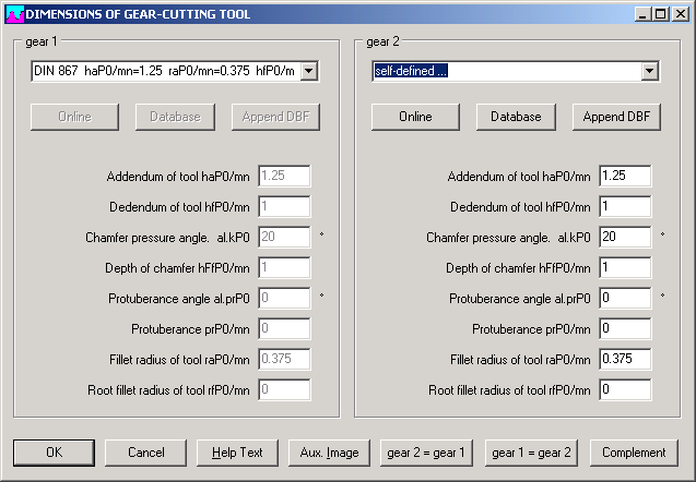 To enable users to optimize gear trains with extra-depth gearing, the program allows the tool dimensions of normal and protuberance profiles to be defined freely, with and without