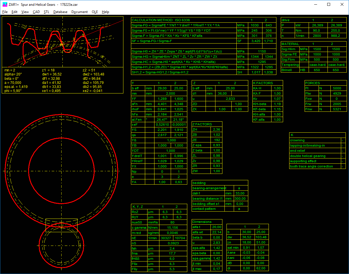 The ZAR1+ gear calculation program calculates the geometry and strength of externally and internally toothed straight spur and helical gears with involute toothing as well as rack-pinion gears in conformance