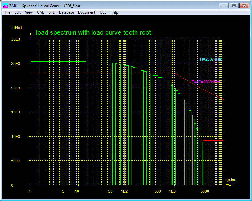 ZAR1+ allows you to define a load collective and calculate the application factors KA, Results are drawn in life expectancy diagrams.