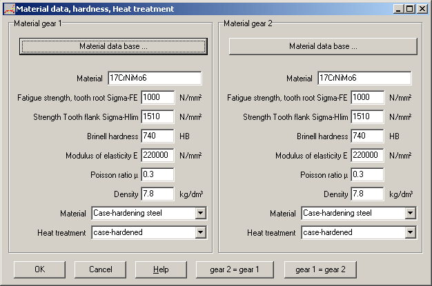 A data base is already included in the program containing the most important gearing materials and their properties.