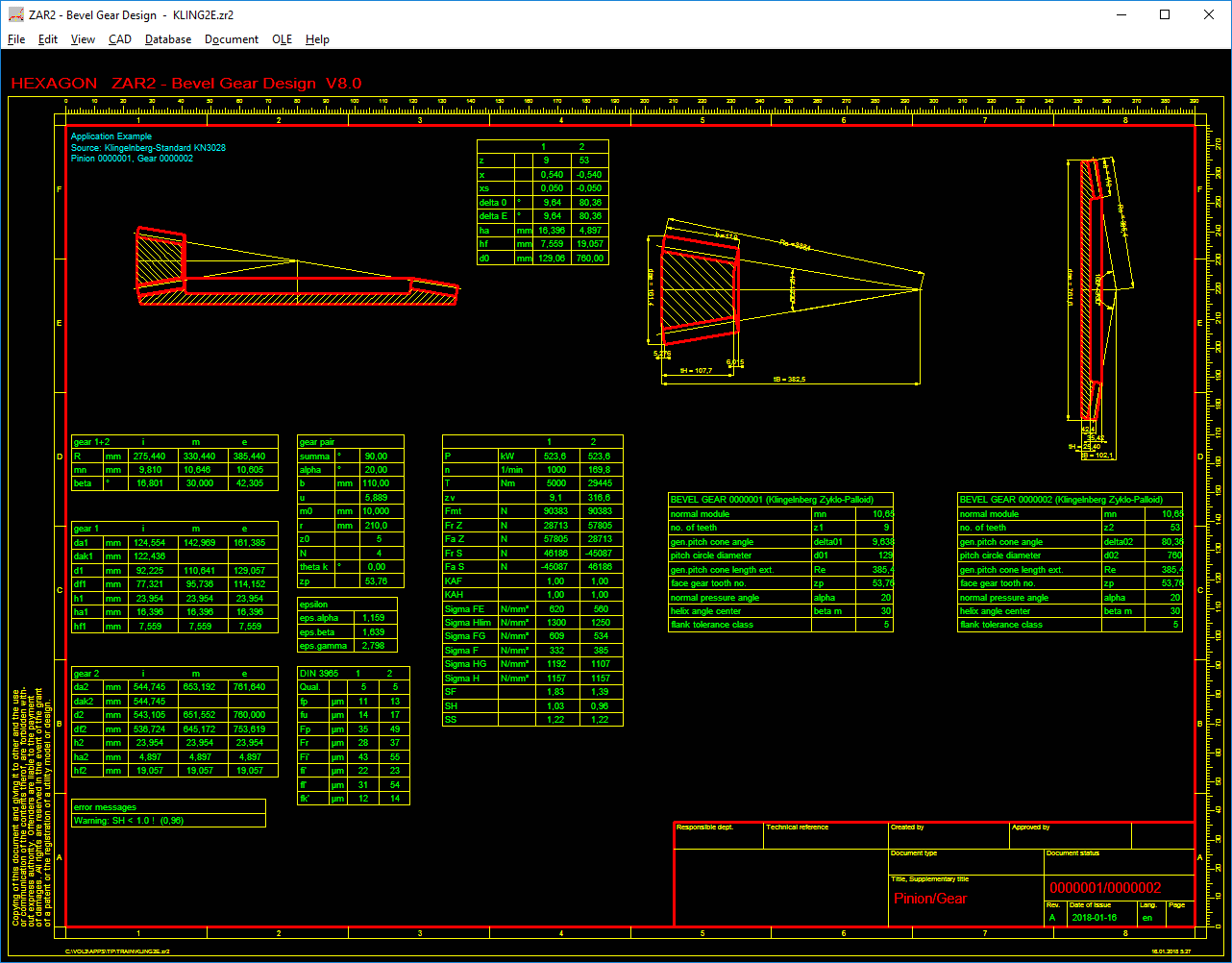 ZAR2 calculates all dimensions of bevel gears with cyclo palloid gearing in accordance with Klingelnberg, and the safety margins against root fatigue fracture, pitting and seizure in accordance with DIN 3991.