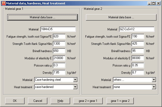 The program already includes a data base containing the most important gear materials and their values.